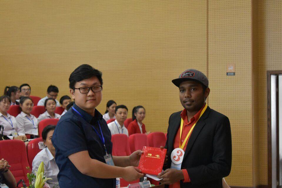 On 19 September, the first China-South Asia Young Leaders Career Simulation Event was successfully held at the Youth Road Campus. The event was hosted by the college, co-organized by Xindao Technology Co., Ltd, Ya'an Baimei Auto Sales & Service Co., Ltd, Ya'an Glas Photoelectric Technology Co., Ltd and Zhong Gong Education, with Yang Shanghai, Director of Sichuan Talent Exchange Centre, Hao Lan, Director of Ya'an Talent Exchange Centre, Song Lizhi, member of the Party Committee of the college and Director of Adult Education and Training Department, Song Feng, Director of Admissions and Employment Department, 23 young leaders from India, Nepal, Sri Lanka, the 23 representatives of youth leaders from four countries of India, Nepal, Sri Lanka and Maldives and 10 representatives of young students from the Chinese side, all members of the College's Student Innovation and Entrepreneurship Club and representatives of students from the Department of Education, the Department of Travel and Economics and the Department of Nursing attended in total more than 200 people.