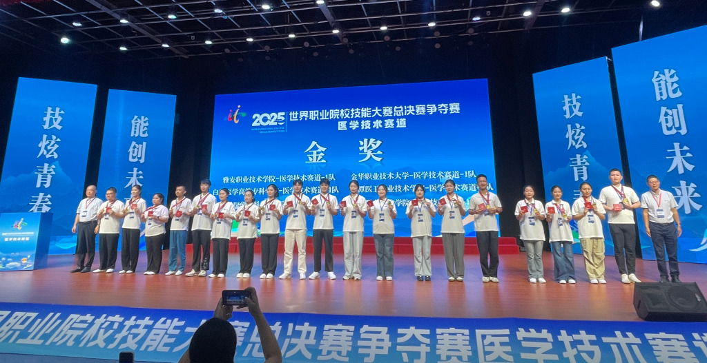 近日,从河南信阳传来振奋人心的捷报!在8月19日至24日于信阳职业技术学院举办的2025年世界职业院校技能大赛总决赛争夺赛(医学技术赛道)上,由学校临床医学院(附属医院)党委副书记吴洁领队,王艳玫、丁小秘两位专业教师指导,陈圣、周思怡、张彤、杨兴茹组成的参赛团队,凭借扎实的专业功底、精湛的技术技能和出色的临场发挥,从全国178支顶尖代表队中脱颖而出,勇夺该赛道金奖。这枚奖牌是学校在今年世界职业院校技能大赛...