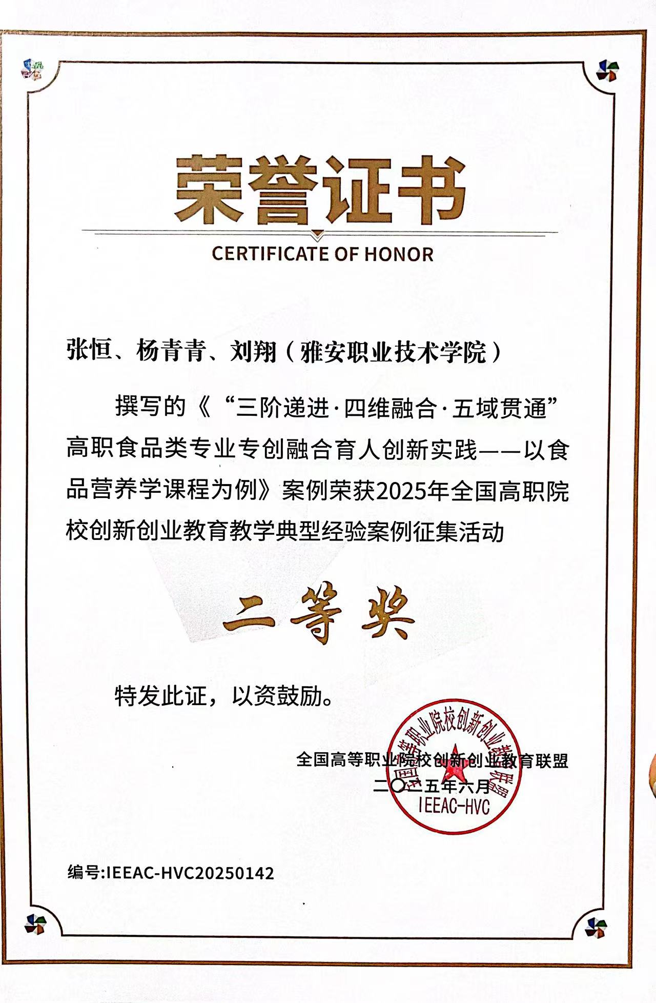 08-08-2025betway官网案例荣获2025年全国高职院校创新创业教育教学典型经验案例二等奖