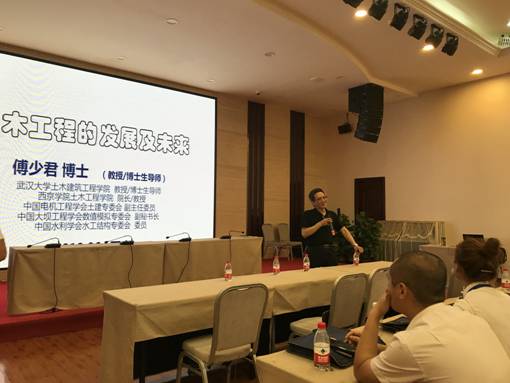 开班仪式上,黄文准副校长介绍了taptap官网的基本情况和教学安排;傅少君院长介绍了土木学院的科研水平和师资情况;区住建局局长吴海军要求全体学员要珍惜这次学习机会,把学到的知识和才干运用到工作中去,希望学员学有所思,学有所成;区协调办主任梅春满通报了全区校地融合成果,并对学员提出了殷切的希望。最后,傅少君院长做了题为“土木工程的发展及未来”的精彩报告。