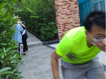 随即进行了火场逃生的演练。拉开烟雾弹,警报响起,1分钟内所有老师和学生迅速有序的撤离火灾现场,在实验室大门口集合,实验室管理老师确认保证所有人员全部撤离火灾现场后清点人数。