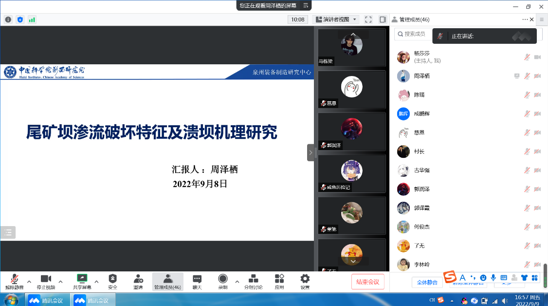 9月9日下午,taptap点点官方网站特邀中国科学院海西研究所泉州装备制造中心的周泽栖工程师线上开展了题为“尾矿坝渗流破坏特征及溃坝机理研究”的学术报告,taptap点点官方网站研究生、本科生和部分教师参加了此次报告会。