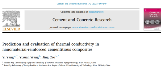 论文信息:Yang, Yi; Wang, Yixuan; Cao, Jing; Prediction and evaluation of thermal conductivity in nanomaterial-reinforced cementitious composites, Cement and Concrete Research, 2023,10724.