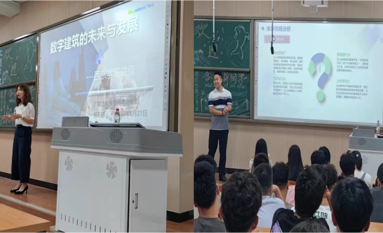 在广联达科技股份有限公司,陕西区域经理杨彩丽接待我院到访师生,并安排专员做“数字建筑”知识讲解。数字建筑,是虚实映射的“数字孪生”,是驱动建筑产业的全过程、全要素、全参与方的升级的行业战略,是为产业链上下游各方赋能的建筑产业互联网平台,也是实现建筑产业多方共赢、协同发展的生态系统。工程造价和智能建造专业新生通过参观学习,初步了解数字建筑推动行业转型升级等方面知识,对自己所选择的专业发展方向和就业前景有了进一步的认知。