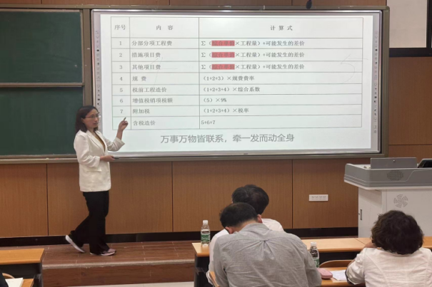本次活动邀请校级督导余历军教授、陈立宇教授、杨红梅教授以及院级督导郑军兴副教授莅临指导,教学副院长张海龙主持。土木工程教研室李遇春教授和权娟娟教授分别作《弹塑性力学》和《工程测量》课程的思政示范课;滕伟玲副教授的《安装工程造价》观摩课、杨阳老师的《建设法规》观摩课、李庆瑞老师的《信息化装配式施工》观摩课、袁克阔副教授的《工程灾害与防灾减灾》观摩课以及李小伟老师的《道路勘测设计》观摩课也各具特色,充分展示了给位老师的教学风格。