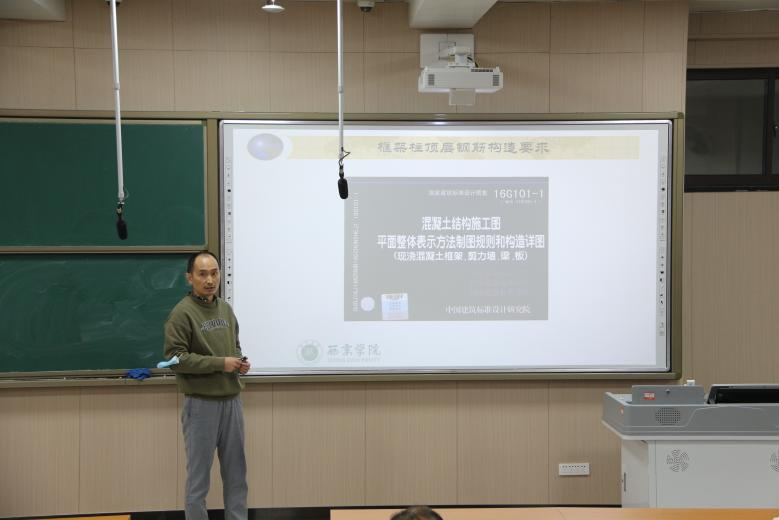 随后,骨干教师张明明老师带来了《绿色建筑概论》课程的示范课展示。张老师主讲《绿色建筑概论》和《土木工程施工技术》等课程,对绿色建筑领域有着深入的研究。在说课过程中,张老师分享了如何通过课堂教学和实践案例,引导学生关注绿色建筑的发展和应用。他的讲解内容丰富、条理清晰,为青年教师提供了宝贵的经验和启示。