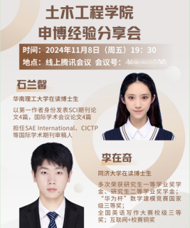 为助力硕士研究生做好学业规划、全面掌握申请攻读博士学位的相关事宜,taptap点点官方网站于近日通过线上形式举办了一场申博经验交流会。交流会邀请到同济大学在读博士生李在奇同学与华南理工大学在读博士生石兰馨同学作为主讲嘉宾,分享了申博过程中的宝贵经验与建议,为同学们提供了有益的参考。