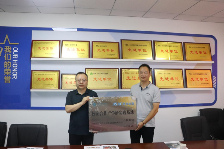 在与会人员的共同见证下,双方代表签署了《校企合作协议书》。张海龙向建信市政检测公司授予“校企合作产学研实践基地”牌匾。仪式结束后,学院师生参观了企业检测场所及先进设备设施,并在技术人员指导下进行了实操演练,进一步加深了对行业实践的认知。