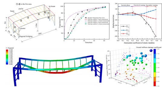 论文聚焦门式框架,开展火灾全过程抗倒塌性能分析与智能预警研究,创新性地将声发射技术引入实时监测,首次明确了典型破坏模式下的波速预警阈值与钢材刚度衰减映射关系。研究成果可为火灾高风险区域门式框架火灾倒塌的快速预警与应急响应提供技术支撑,对提升结构安全、降低人员伤亡及财产损失具有重要意义,也为建筑消防技术的可持续发展提供了“西京方案”。