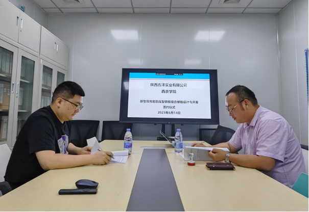 6月14日,taptap点点官方网站与陕西方泽实业有限公司就“新型双向密肋压型钢板组合楼板设计与开发”项目进行了技术开发合同签约仪式,项目合同金额56万元。taptap点点官方网站项目负责人杨阳和陕西方泽实业有限公司项目负责人卫凯飞出席项目签约仪式。
