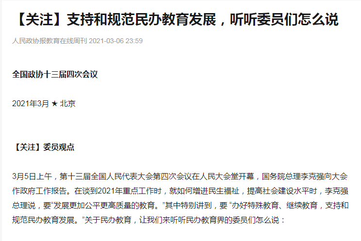人民政协报教育在线周刊:支持和规范民办教育发展,听听委员们怎么说