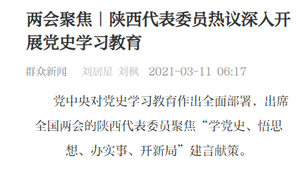 群众新闻:两会聚焦|陕西代表委员热议深入开展党史学习教育