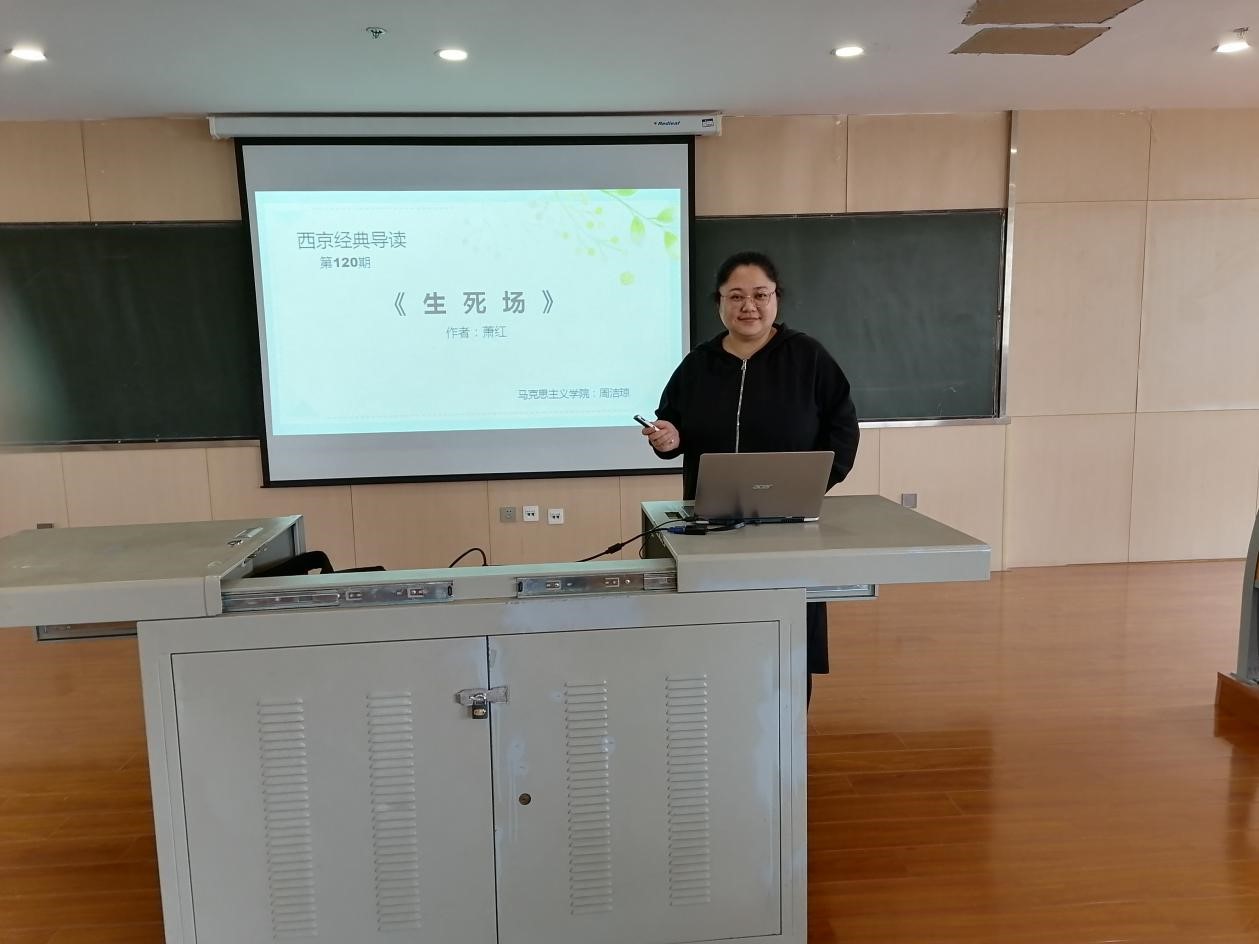 48日下午,“西京经典导读”讲座在图书馆303报告厅举行。本场导读由马克思主义学院周洁琼老师主讲,她导读的作品是知名作家萧红所著的小说《生死场》。马克思主义学院教师和博雅书院的学生参加了本次导读活动。