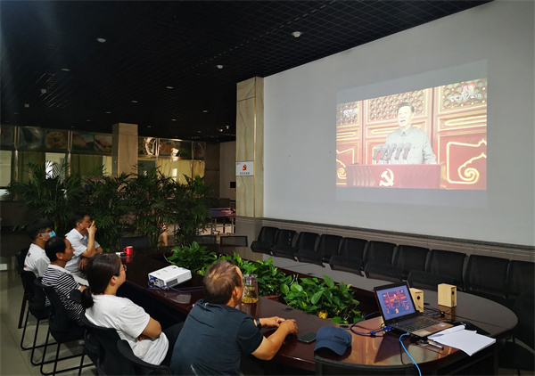 华煜公司总经理唐娣芬:期盼已久的建党百年庆典终于在今天举行了,学校领导及党委委员早早的就来到了指定会场,我们一起观看了建党一百周年庆典仪式,心潮澎湃,激动不已,热泪盈眶,挥之不去!我是何其有幸,生于华夏,生于盛世,见证百年大党,风华正茂,目光所及皆华夏,五星闪耀皆信仰!作为一名新时期党员领导干部,一定要铭记历史珍惜现在,增强“四个意识”、坚定“四个自信”、做到“两个维护”;一定要把党的教育事业和自己的本职工作紧密结合起来,不忘初心,牢记使命;一定要把学校的“三个一切”办学理念和我们后勤“师生之上,用心服务”的服务宗旨落实在实际行动上,真正的做到为党育人,为国育才!