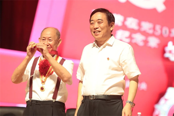 苏华为任万钧颁发了“在党50年纪念章”和全省优秀共产党员奖章、荣誉证书。
