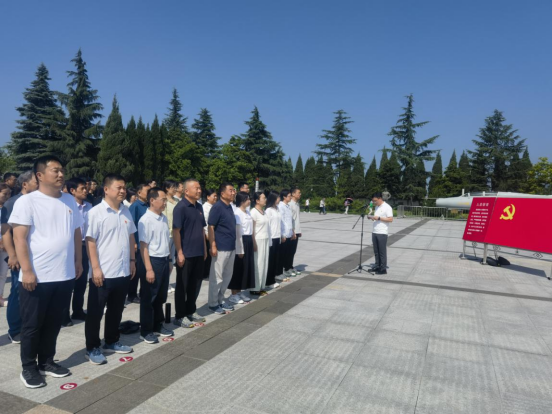 为坚定理想信念,增强党员的责任感和使命感,深入学习贯彻习近平总书记关于党纪学习教育的重要讲话和重要指示精神,牢记党的革命历史,弘扬爱国主义精神。7月11日,机关党委九支部全体党员赴扶眉战役纪念馆进行参观学习,并开展“赓续红色血脉 牢记初心使命”党纪学习教育主题实践活动。九支部书记杨宝国主持仪式,全体党员向烈士鞠躬默哀、敬献花篮,九支部组织委员李卫带领党员们面向党旗庄严宣誓,重温入党誓词。