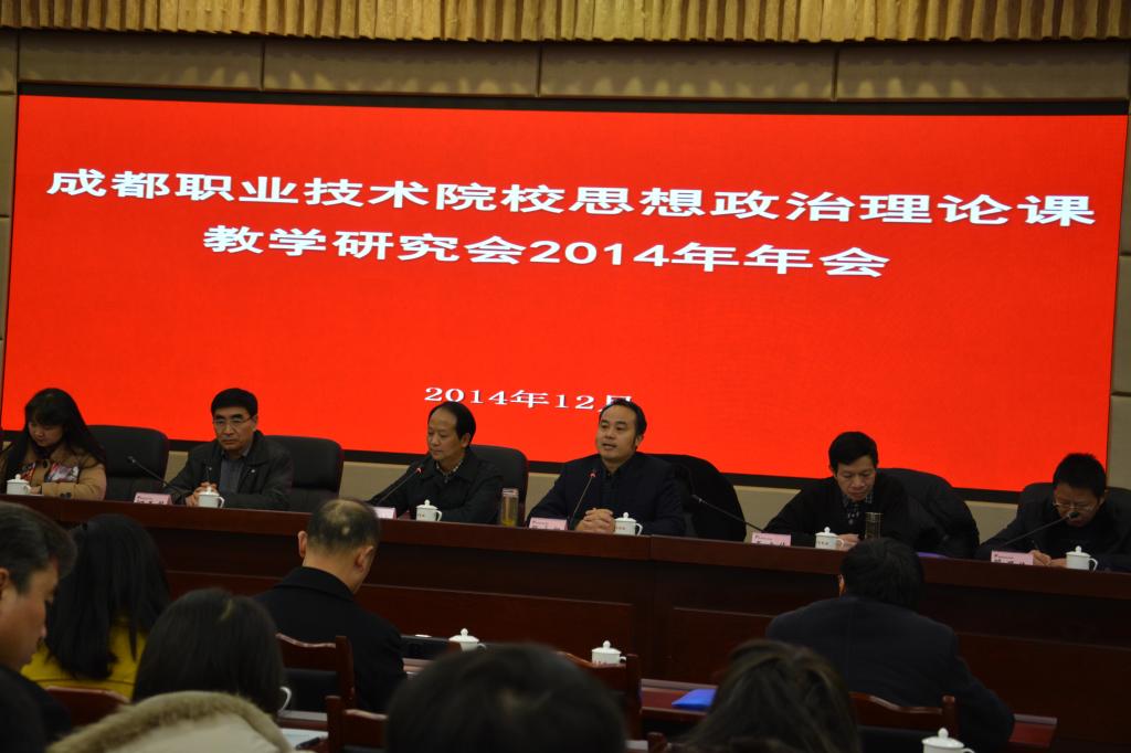 12月20日-21日,由学院承办的成都地区高职院校2014年思想政治理论课教学研究会年会在雅安召开。来自全省18所职业技术院校的院领导、思想政治理论教育专家、专业教师70余人参加了会议。学会会长、川北幼儿师范高等专科学校党委书记张斌主持大会开幕式 。