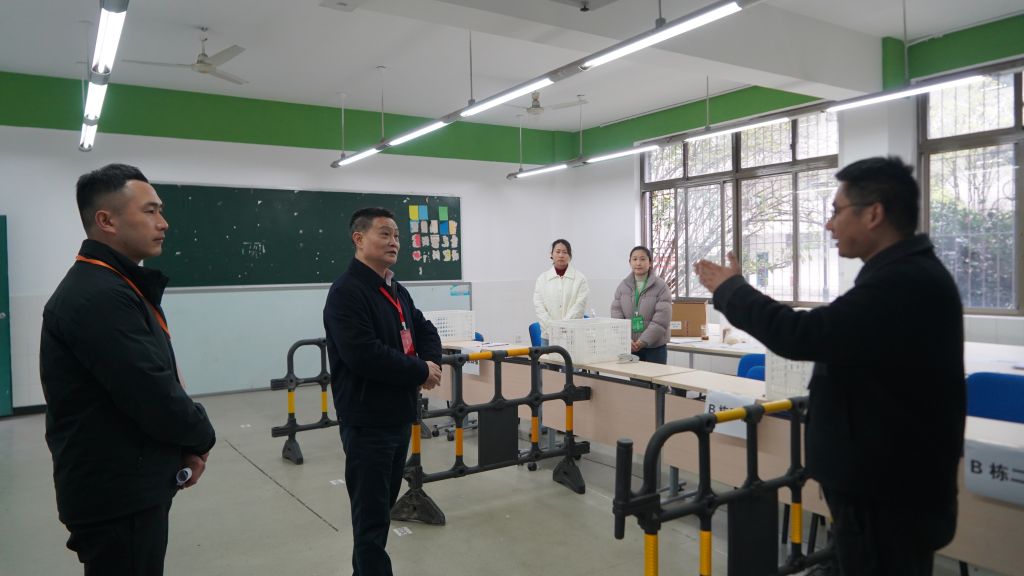 考前,学校主要领导亲临现场对考场周边环境、考场设置、安防措施等进行检查、现场办公查漏补缺,各部门密切配合、全力以赴提供保障。教学口勇挑重担,抓实系统培训和演练,确保每一位工作人员熟悉岗位职责、工作流程,为保质保量完成工作任务打下坚实基础。