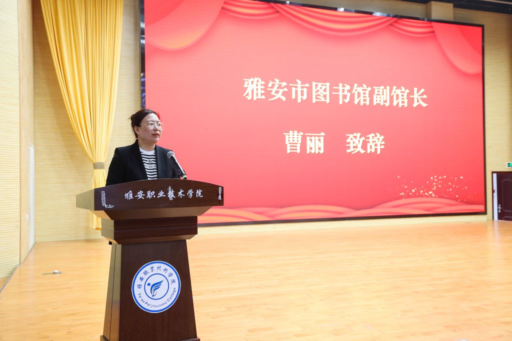 市图书馆副馆长曹丽在活动上发言。她表示,雅安市图书馆今后将继续与betway西汉姆联官网在联合阅读推广与文献资源共建共享方面加强合作,希望通过校地协同共进、多维联动,共同推动书香雅安建设。
