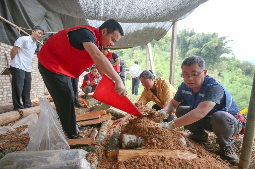 在共和村,随队科技帮扶工作组基于前期对当地土壤环境的科学分析和适宜栽种中草药材的筛选,为农户带去菌种和天麻,并深入田间和林下对种植农户进行培训。