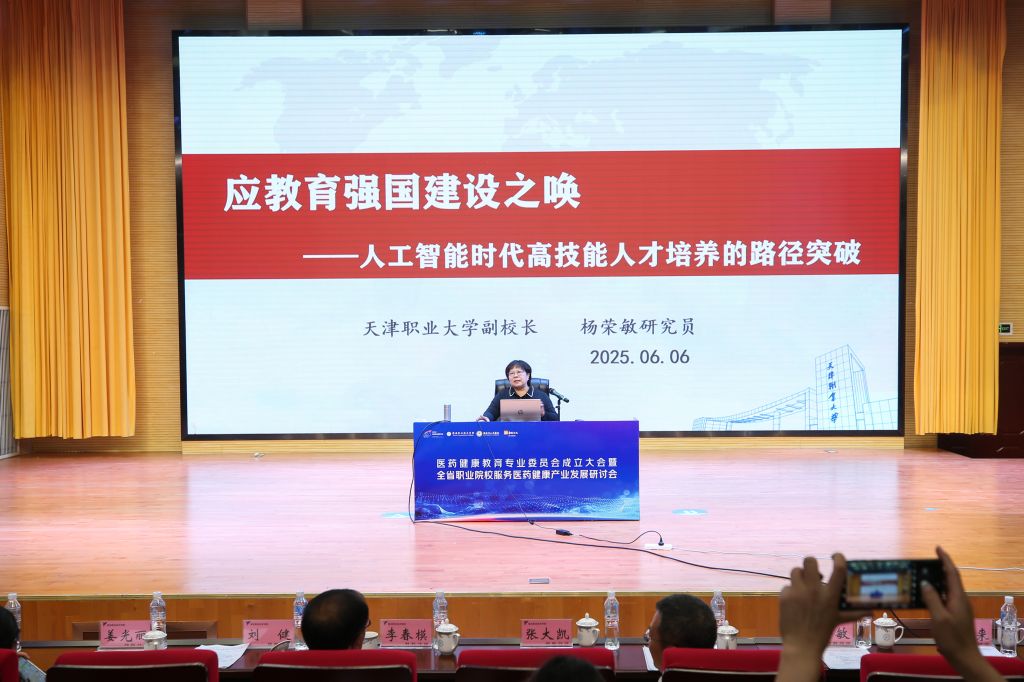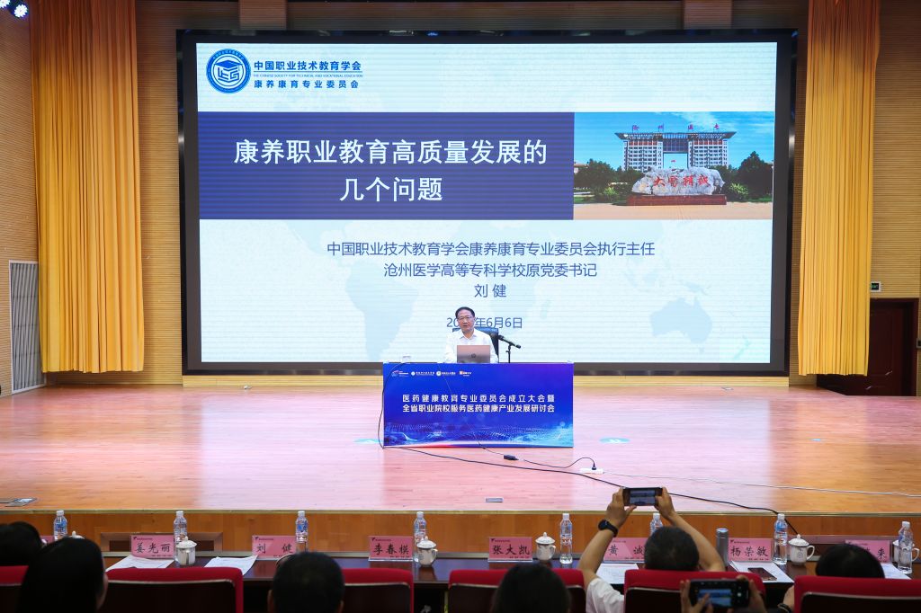 成立大会后,还举行了四川省职业院校服务医药健康产业发展研讨会。中国职业技术教育学会康养康育专业委员会执行主任、沧州医学高等专科学校原党委书记刘健教授和天津职业大学副校长杨荣敏教授以分别以《康养职业教育高质量发展的几个问题》和《应教育强国建设之唤:人工智能时代高技能人才培养的路径突破》为题作专题报告。