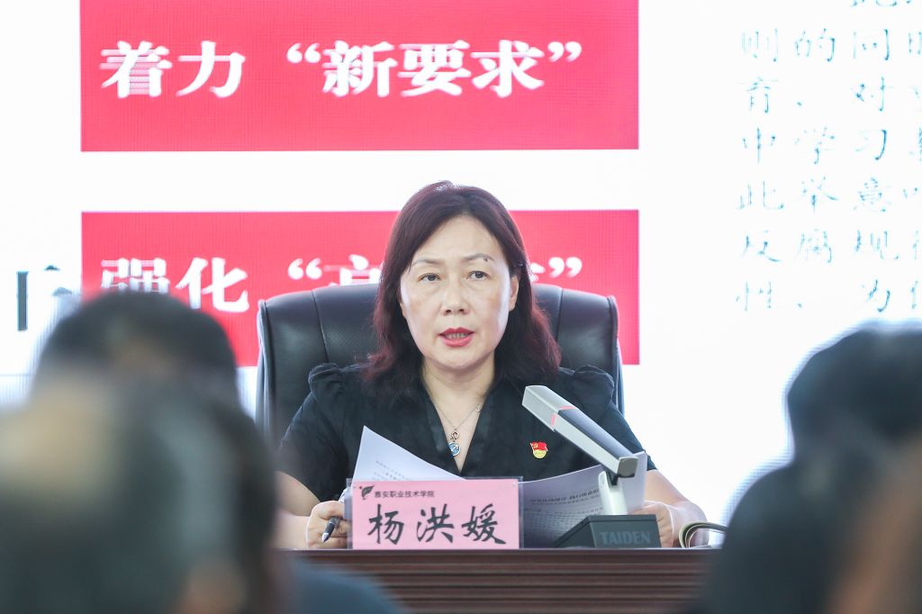 她寄语全体党员领导干部,要以此次学习教育为契机,深刻反思、认真查摆、坚决整改。要以更高标准、更严要求约束自己,带头筑牢思想防线,做政治上的“明白人”,带头深入基层一线,做师生的“贴心人”,带头力戒形式主义,做务实的“实干家”,带头严守纪律规矩,做廉洁的“清白人”,为学校职业教育事业发展及地方经济社会发展贡献力量。