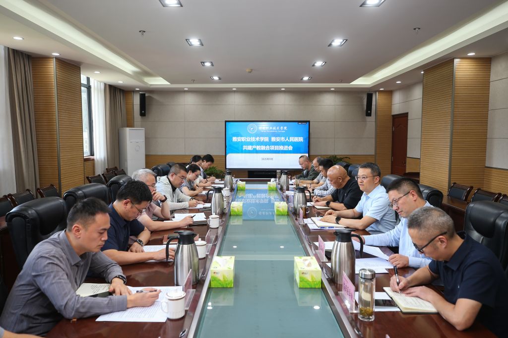 9月23日下午,学校与雅安市人民医院产教融合项目推进会在学校行政楼303会议室顺利召开。学校党委副书记、校长黄诚,雅安市人民医院党委副书记、院长张远国,党委委员、副院长胡钦胜参加会议,会议由学校党委常委、副校长樊正康主持。