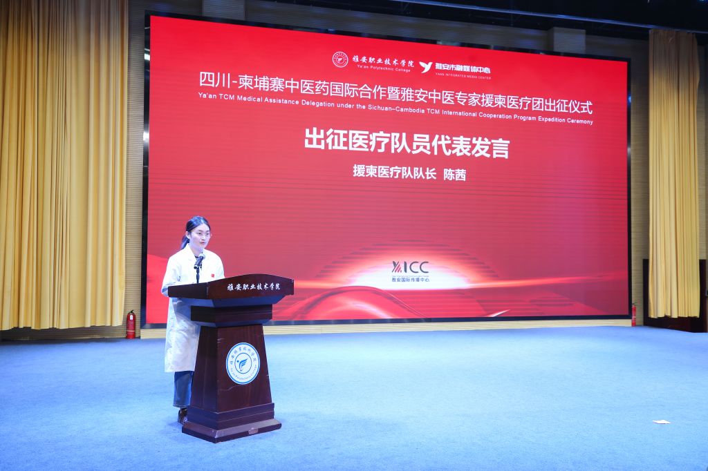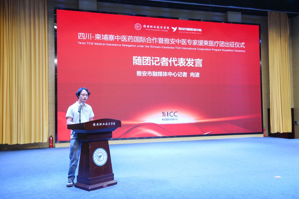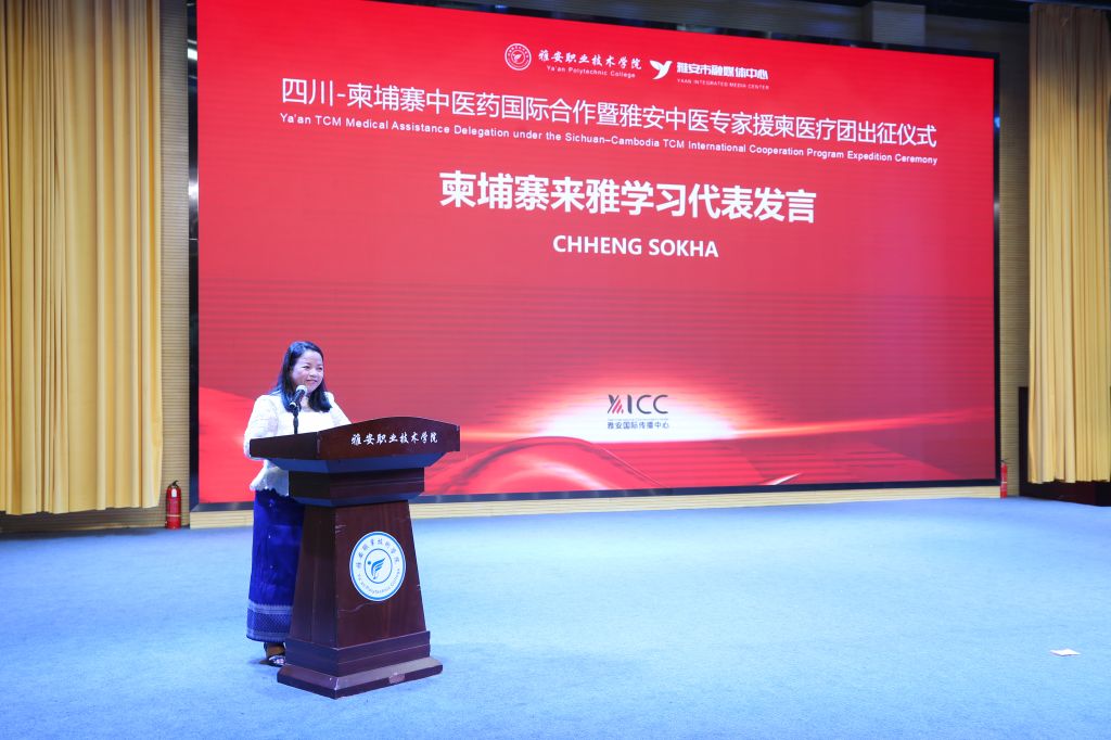 仪式上,来betway官网学习的柬埔寨学员代表CHHENG SOKHA分享了在雅安的学习收获与感悟。本次出征医疗队队长、betway官网中医与康复养生学院教师陈茜,以及随团记者代表向波分别发言,表达了不负重托、全力以赴完成任务的坚定决心。