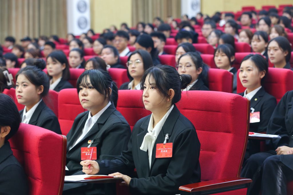 大会在与会者齐唱国歌声中拉开帷幕。赵野逸代表共青团雅安市委对大会的召开表示祝贺,并向雅职青年团员提出三点希望:一是主动走出校园,积极参与“三下乡”、社区服务等实践活动,用脚步丈量雅州大地,将所学知识转化为服务群众的实际行动,在生态保护宣传、乡村医教帮扶、文旅品牌推广等工作中展现青春作为;二是传承“感恩奋进”的雅安精神,敢于创新、勇于突破,在各自领域为家乡发展注入青春活力;三是牢记“厚德、重能、求是、创新”的校训,既脚踏实地又敢为人先,让青春在奉献中绽放绚丽光彩。