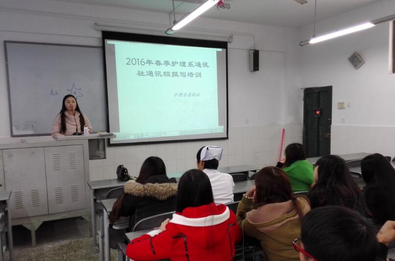 【本网讯】为进一步提高通讯稿的写作质量,提升同学们的写作水平。3月17日,护理系通讯社在青年路校区B203教室组织开展了通讯稿撰写培训讲座。护理系团总支副书记吴玉阳老师主讲,通讯社全体成员参加培训。