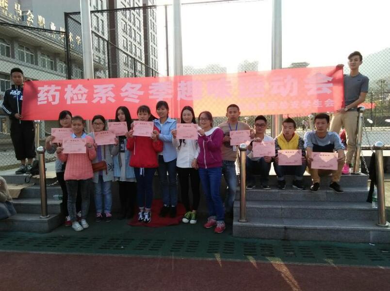 经过两个多小时的激烈比赛,最终产生了冠军代表队并颁发了奖状。兵乓球接力赛17个班级参赛由2015级卫检1班夺冠;小型保龄球比赛19个班级参赛由2014级食检1班夺冠;齐心协力向前走29个班级参赛由2014级药学1班夺冠;跳长绳18个班级参赛由2015级卫检1班夺冠。