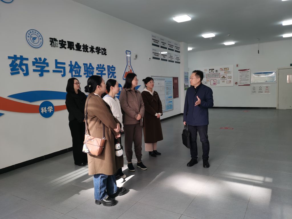 11月21日上午,四川城市职业学院医学与健康学院院长谭静、医健学院与明德书院党总支书记李玲率队,到betway官网交流党建工作。学校党委常委、组织部部长刘永恩,组织部副部长、人事处副处长杨梅,药学与检验学院党总支书记杨泽刚,药学与检验学院副院长、第二党支部书记何靖柳及党委组织部、药检学院相关同志参加座谈会并陪同参观药学与检验学院食品药品生产性实训基地。