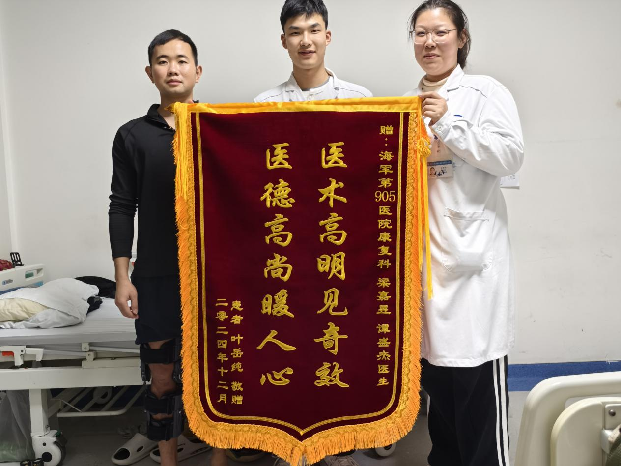 据悉,患者叶岳纯因训练不慎受伤,在上海某医院行前交叉韧带重建手术后,11月23日转于中国人民解放军海军第九〇五医院进行康复治疗。治疗期间,在该医院带教老师梁嘉昱医生的指导下,学校中医与康复养生学院2022级针灸推拿专业实习生谭胜杰同学全程参与了对该名患者的诊治。