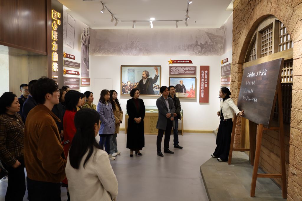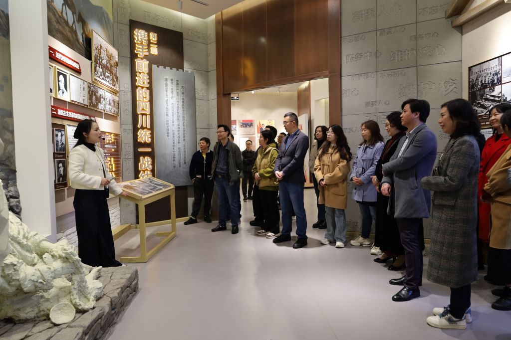 在四川省社会主义学院四川统一战线历史教学展示馆,在专业讲解员的导引下,大家通过一帧帧珍贵的图片、一件件厚重的文献资料,一段段生动鲜活的革命史,深入了解了四川统一战线的发展历程与辉煌成就。参观过程中,成员们不时交流感悟,对统一战线作为夺取革命、建设、改革事业胜利的重要法宝作用有了进一步的认识,并深刻感受到中国共产党与各民主党派、无党派人士肝胆相照、携手前进的奋斗历程,进一步增强了走中国特色社会主义政治发展道路的坚定信念。