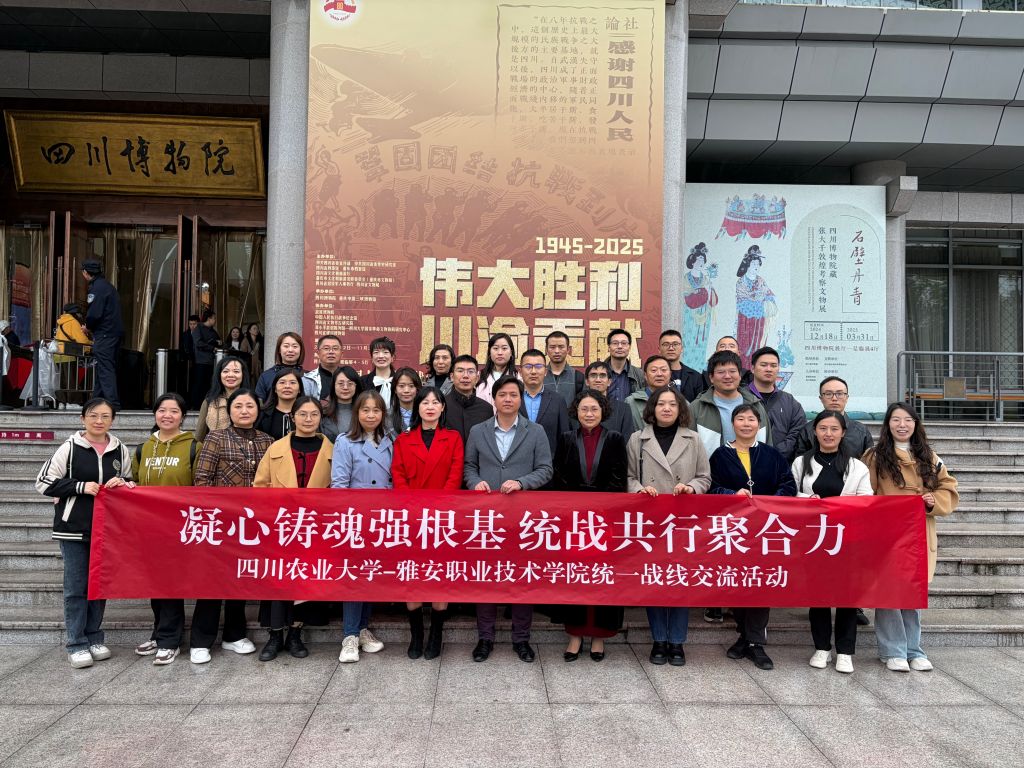 为深入学习贯彻新时代中国特色社会主义思想,进一步巩固团结奋斗的共同思想政治基础,10月24日,学校党委宣传统战部与四川农业大学党委统战部联合举办“凝心铸魂强根基 统战共行聚合力”统一战线主题交流活动。学校党委常委、宣传统战部长、工会主席夏安琼带队,betway官网新当选的民盟、民建两个党派的全体支委及无党派人士、归国留学人员代表20余人,与四川农业大学四个民主党派近20名成员同赴成都开展研学交流。