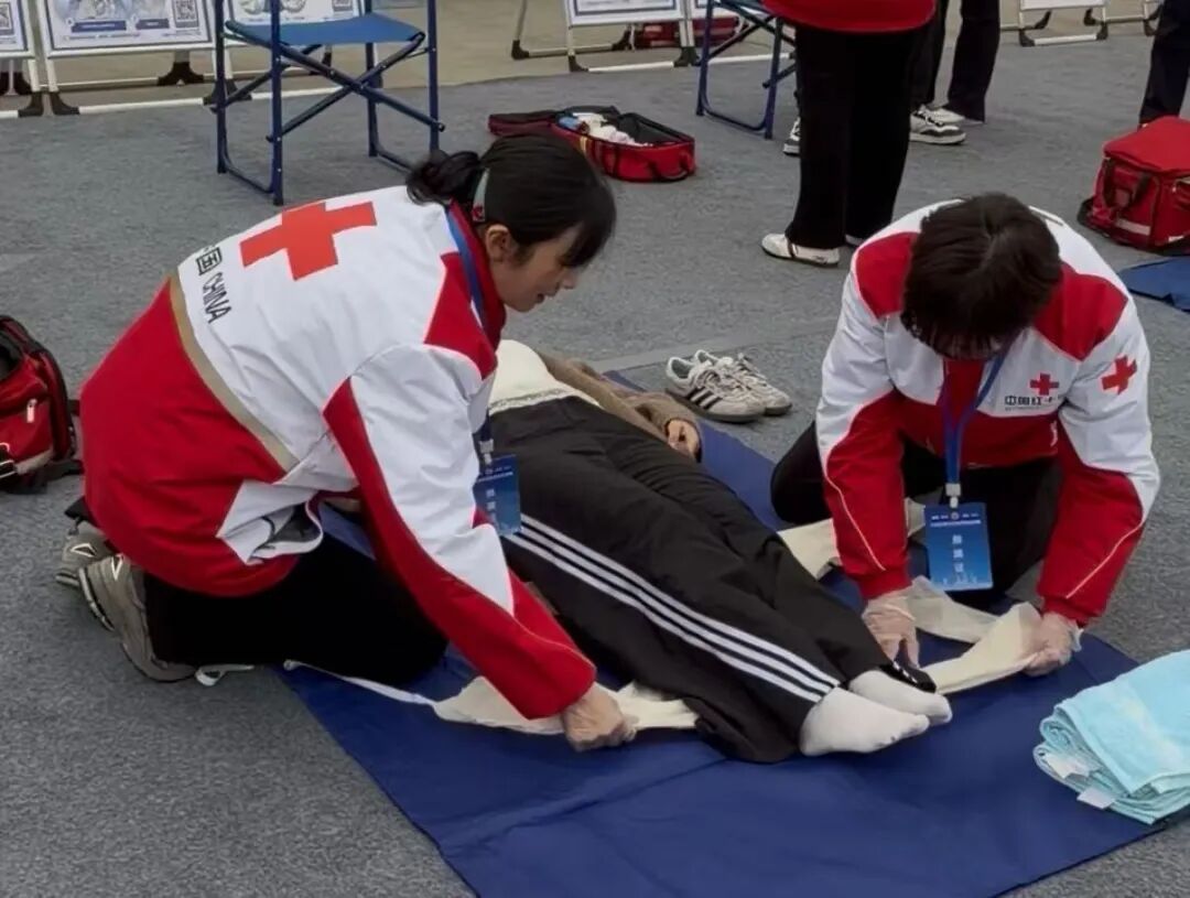 演练现场,队员们统一着装、分工明确,专业器材摆放有序。他们严格按照中国红十字会救护员操作标准,进行了三角巾头部包扎、前臂离断包扎、骨折固定等常见危急症紧急处置的实操演示,流程清晰、动作娴熟,吸引了川渝地区超过200名应急志愿者现场观摩交流。队员们也主动分享技巧、耐心解答,发挥了良好的示范带动作用。