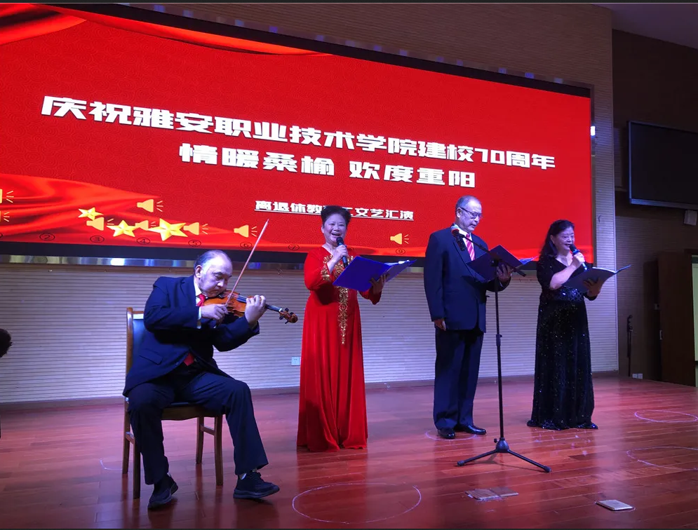 此次文艺演出也是该学院建校70周年的系列活动之一,退休教职工们自编自演,以诗、歌、舞等形式展示工作、学习与生活成果。