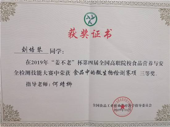 四川新闻网雅安11月21日讯(何靖柳 姚志如 文/图)11月14日-17日,第四届全国高职院校食品营养与安全检测技能大赛由全国食品工业职业教育教学指导委员会主办,江苏农林职业技术学院承办,全国共83所院校,163名选手参加比赛。经过激烈角逐,betway西汉姆联官网药学与检验学院食品专业的两名学生分别获得“食品中营养素检测”赛项三等奖、“食品中的微生物检测”赛项三等奖和团体三等奖的优异成绩。