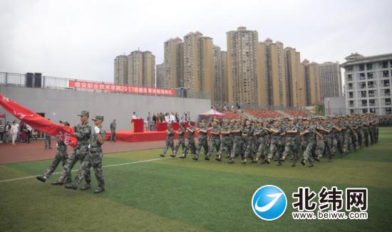 昨(27)日,betway西汉姆联官网2017级新生军训结训典礼分别在青年路校区足球场和经开区实训与服务中心田径场举行。