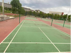 网球实训场地共分为青年路和经开区两个校区,共计6块。其中青年路校区2块,均为室外场地;经开区校区共计4块,3块室外,1块室内。每一块场地均按照国际标准进行修建。网球场地整体呈一个长方形,尺寸是36560毫米(长)×18280毫米(宽)。半场对角线长16170毫米,相邻场地边线之间的距离3米。网球场地除了满足公共体育教研室教学活动,还需要进行教职工日常锻炼、承接各级体育赛事、承办学校各类赛事。